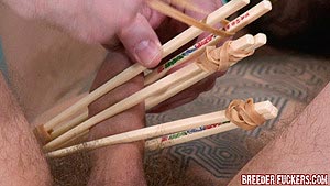 | Just the slightest tightening causes absolute torment! Pegs are attached all along that silky foreskin. His precious package is now completely useless. All this hetero slut is good for now is a fucking! His legs are elevated so his cunt is fully exposed. The only lube he gets is a bit of gob on the end of a giant dildo which is shoved straight up his dirt hole. Men like Anton like power tools, don't they?! He's continuously pounded till his sphincter is so stretched we can see right up into his guts. His arse cheeks are given a hard walloping with a cane before his bum is given a continuous fucking. The only thing those tears streaming down his face say is how pitifully sorry he feels for himself. All his precious pride has be thoroughly stripped from him along with his anal virginity! | |||