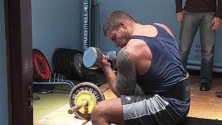 We perved on him for a few minutes, watching his huge muscles bulging as he lifted his weights.