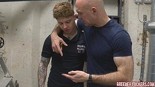 We greedily study his fit straight body as he desperately strokes his cock and spills a load before us. Mike blushes red all over with aching self-consciousness as realises how low he's sunk. After we stripped away Mike's macho pride in this video we went on to use him in debauched BreederFuckers videos!